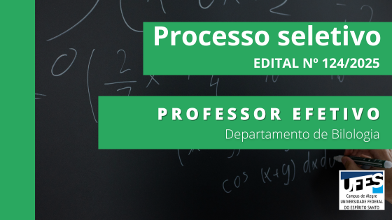 Inscrições: O período de inscrições será das 0h do dia 12/01/2026 até às 23h59min do dia 11/02/2026 (Horário de Brasília), exclusivamente, pelo e-mail: departamento.biologia.alegre [at] ufes.br