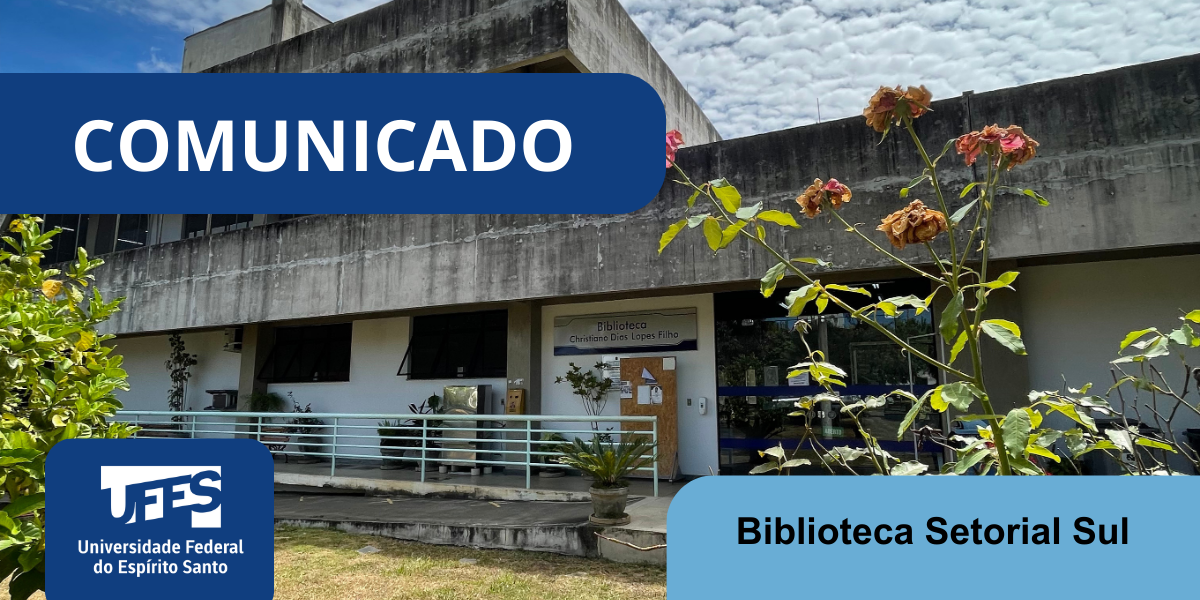 A Seção de Biblioteca - Setorial Sul, comunica que, excepcionalmente no dia 14/08, o funcionamento será das 07h00 às 19h00.