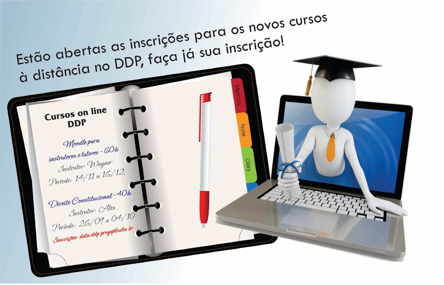 Estão abertas as inscrições para os novos cursos à distância no DDP para servidores do quadro da Ufes.