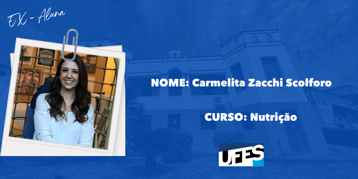 Natural do interior do Espírito Santo, Carmelita ingressou no curso de Nutrição em 2007/2, concluindo a graduação em 2012/1. Sua escolha pela área surgiu da afinidade com disciplinas como química, biologia e matemática, além de uma conversa decisiva com uma nutricionista, que apresentou as possibilidades da profissão. “Percebi que a Nutrição unia minha afinidade pelas ciências com a possibilidade de trabalhar com saúde, pessoas e alimentação — temas que sempre me despertaram interesse”, relembra.