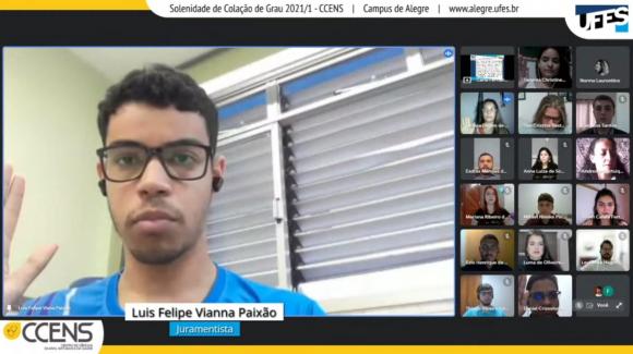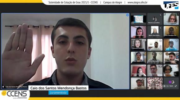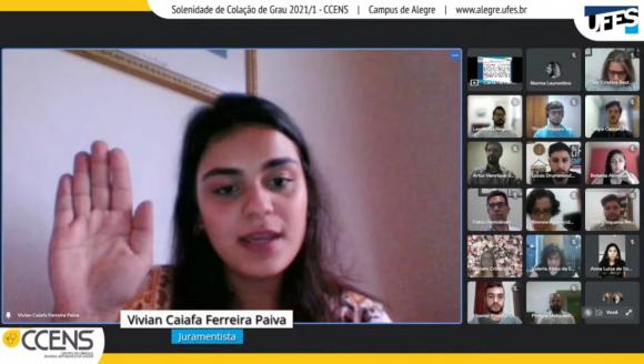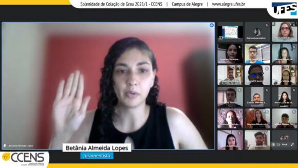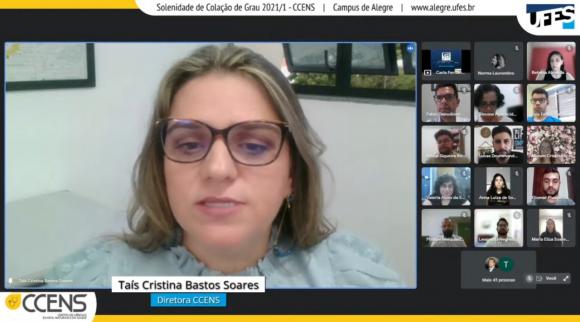 A cerimônia ocorreu por meio de webconferência e foi presidida pela Diretora do CCENS, professora Taís Cristina Bastos Soares. Ao todo, colaram grau 37 alunos(as).