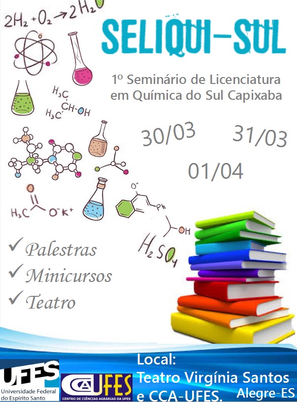 Nos dias 30/03 a 01/04, será realizado o I Seminário de Licenciatura em Química do Sul Capixaba (I SELIQUI-SUL) no Teatro Virgínia Santos. O seminário representa uma iniciativa para discussão da temática sobre a formação de professores que atuarão no ensino médio e superior, visando a capacitação e contribuindo para ampliar a visão da aplicação da química nos diversos setores da sociedade e no cotidiano.